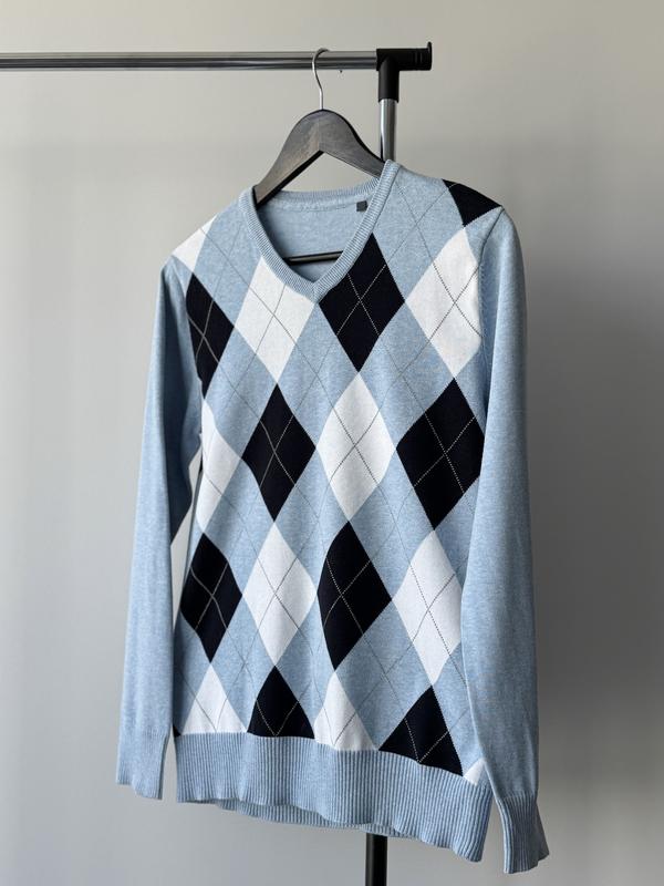 Стильный голубой гольф из 100% хлопка с оригинальным узором в ромбы. Этот гольф — универсальный вариант для вашего гардероба: он добавит элегантности в повседневный образ и обеспечит комфорт в прохладные дни. Размер: M Замеры: - Ширина плеч: 39 см - Полуобхват груди: 47 см - Полуобхват талии: 44 см - Длина рукава от плеча: 61,5 см - Длина по спине: 66 см Мягкая ткань и классический узор делают этот гольф идеальным выбором для стильных и практичных сочетаний!