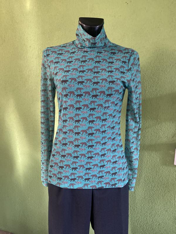 Полупрозрачная водолазка с анималистическим принтом. Размер по набору-М. Замеры:длина-65 см, ПОГ-43 см, ПОБ-46 см, рукав-62 см.