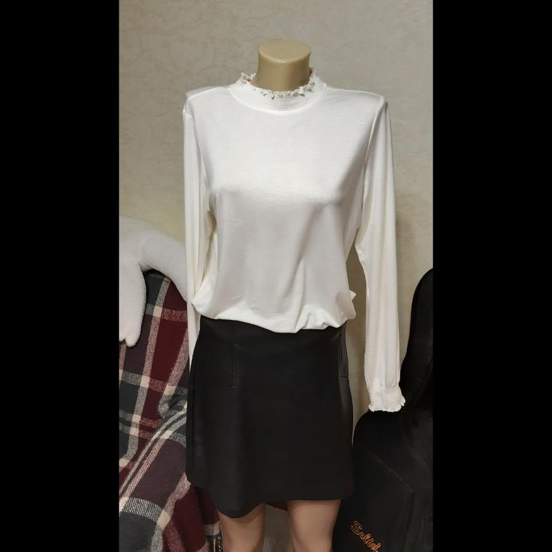 Тонкий женский гольф молочного цвета. По горловине и рукавам красивые манжеты-резинки. Стан идеален. Размер М/L. Ширина плечей 38 см Полуобхват груди 51 см Длина рукава 63 см Длина 61 см.