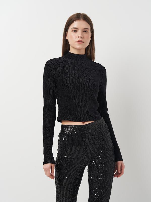Короткая водолазка из жатого велюра с длинными рукавами, вырезом сзади и пуговицами сзади на шее. Возможно повреждение бирки 0931444_черн_12