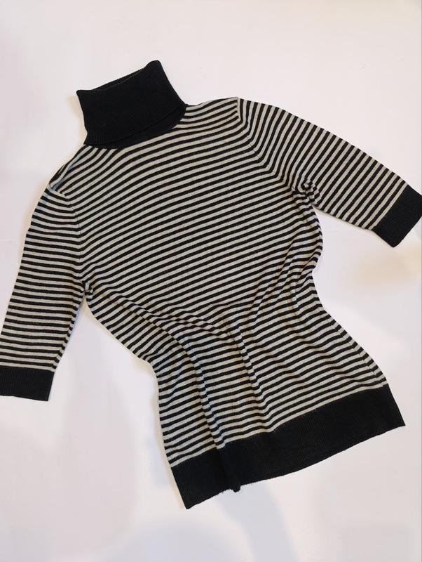 Базова кофтинка у смужку Mango. Бирка со составом отсутствует, но очень мягенькая вискоза с хлопком Размер М Замеры: Длина - 61 см Полуобъем груди - 41 см (очень тянется)