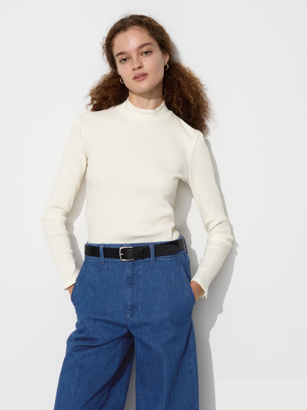 Склад: 96% бавовна, 4% еластан Ribbed High Neck T-Shirt ткань в рубчик умеренной толщины базовая вещь для легкого сочетания на модели размер S, рост 176см