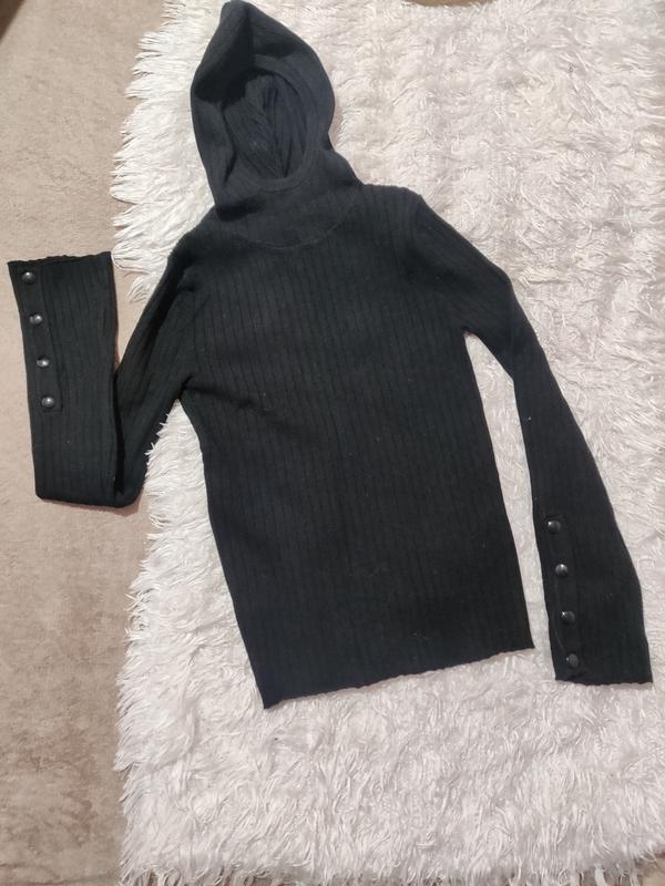 Zara гольф с капюшоном черного цвета фактура лапша рукав расширяется к низу, на рукаве кнопки указан размер 26 S