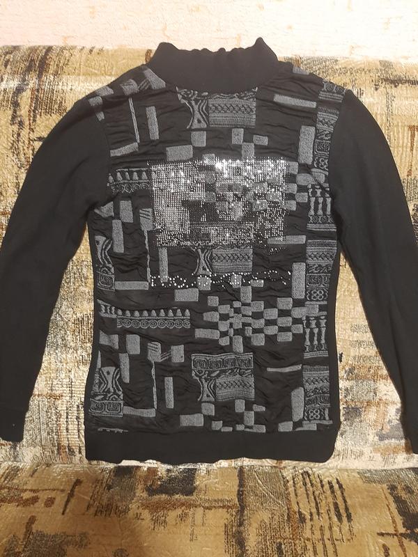 Гольф женский, Трикотаж стрейч, р.46-48.Рукав длинный 54см. Длина гольф 56см. ПОГ 40см. Ворот стойка., Мягкий, приятный на ощупь. Демисезон. с переда принт с блюдами.