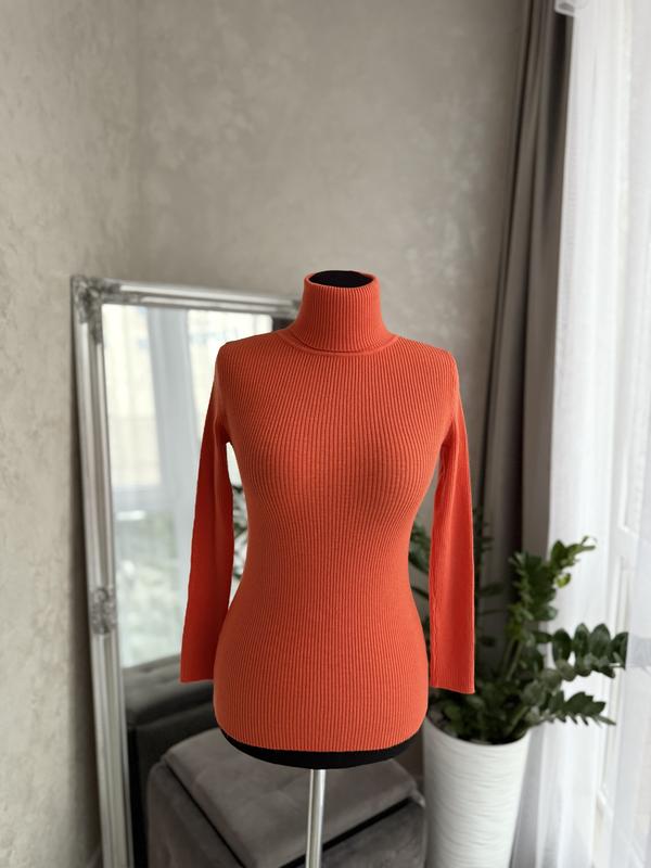 Водолазка в рубчик красивого апельсинового кольору❤️ 70% котон Розмір С можна невеличка С-М Заміри в нерозтянутому стані, дуже гарно тянеться! Плечі піб 33 см Під пахвами піб 36 см Рукав від плеча 51 см Довжина 60 см