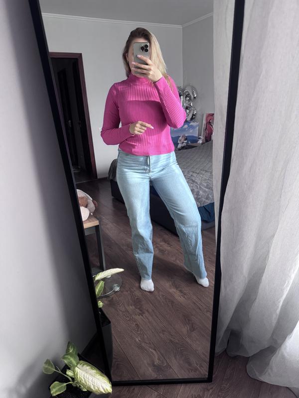 Довжина рукава -63 см Напів обʼєм талії-30 см Довжина виробі від плеч -53 см Тягнеться по фігурі В полоску Без дефектів Яскраво рожевий колір