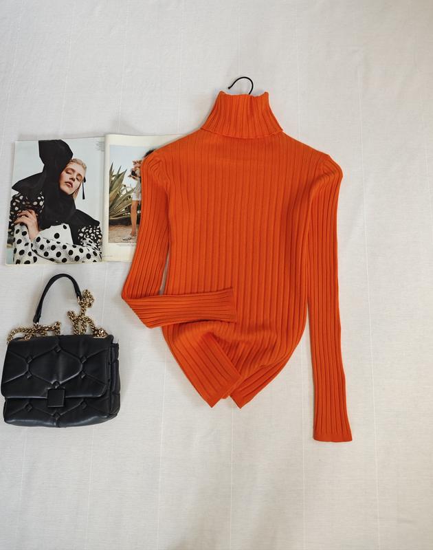 🌿яркий оранжевый гольф рубчик красиво тянется, приятный на ощупь Размер:М Замеры:ПОГ 42 см, длина 62 см, рукав 59 см