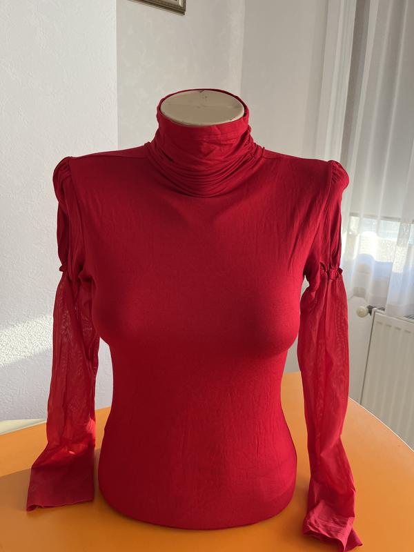 Стильний й жіночий гольф,червоний,рукава-фонаріки,вставка-сітка,р42-44,44-46,новий,Туреччина
