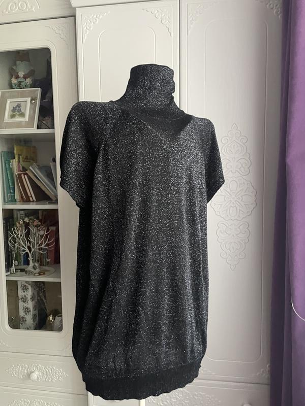 Гольф американка з люрексом , тонкий, мягкий , не колючий , добре тягнеться. Ог в спокійному стані 54 і до 68 тягнеться в руках. Довжина по спинці без коміра 66 см,