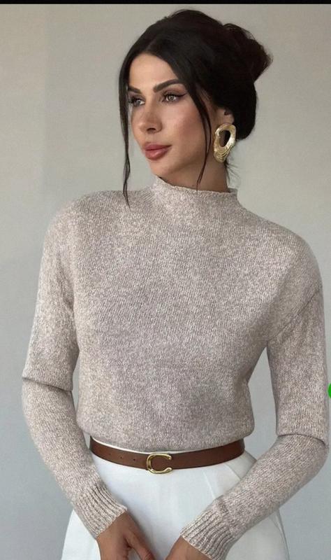 Базовая водолазка бежевого цвета с легким блеском.