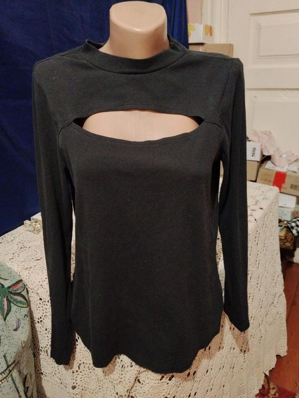 очень красивый черный топ с асиметрическим вырезом в мелкий рубчик.Ткань приятная к телу и хорошо тянется.Размер л,хл, 2хл.По цвету не ярко черный. опис состояние очень хорошее длина 61 рукав 60 ширина комди 49