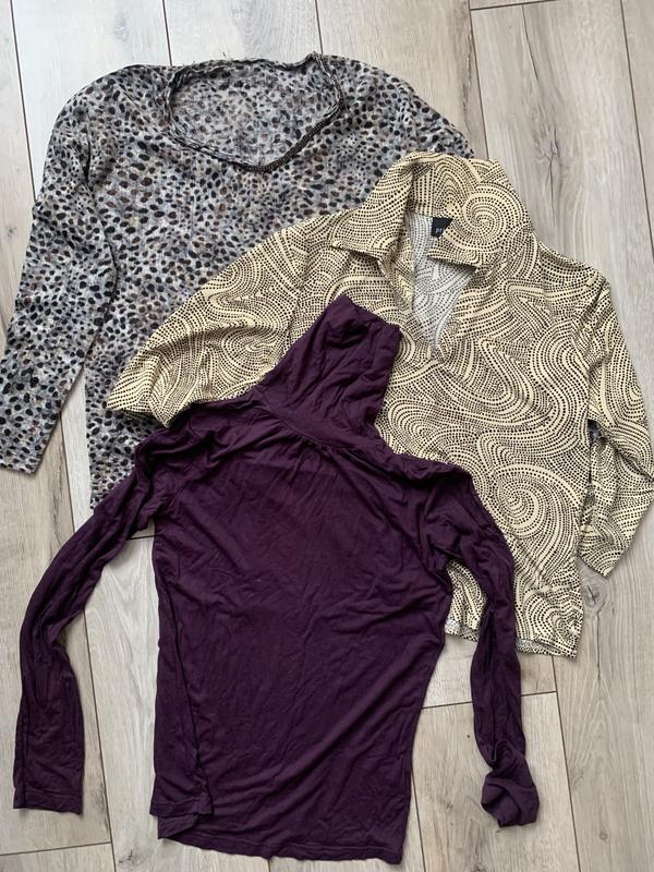 14. Ціна за три кофтинки 450 грн🔥розвантаження! Розмір М/L, гарні марки, б/у, універсальні Заміри: Фіолетовий гольф Довжина (плече-низ): 64 см Напівзахват груди:41 см Напівзахват плече-плече: 36 см Напівзахват талія: 39 см Довжина рукава (плече-низ): 60 см Висота горла: 18 см Фіолетовий гольфик тягнеться, марка Савадж, база Тигрова кофтинка Довжина (плече-низ): 63 см Напівзахват плечі: 59 см Напівзахват груди: 50 Напівзахват талія (низ): 47 см Довжина рукава (плече-низ): 45,5 см Дуже прикольна, сіро-голубий відтінок, рукав приспущений, зара Кофтинка в цяточку з комірцем Довжина (плече-низ): 53 см Напівзахват плече-плече: 40 см Напівзахват груди: 50 см Напівзахват низ: 51 см Довжина рукава (плече-низ): 43 см Це кофтинка блуза, вживу виглядає мега круто, сексі виріз для образу