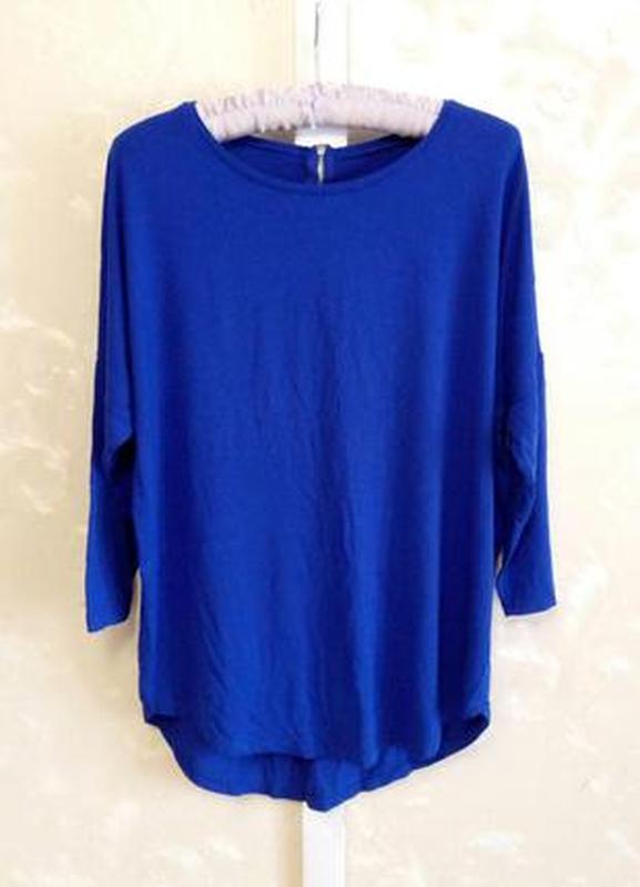 Яркая синяя кофточка летучая мышь Select, состояние новой. Замеры: Длина 70 см, ПОГ 57 см, ширина внизу 50 см, в составе эластан, хорошо тянется, но держит форму. Состав 92%-вискоза, 8%-эластан. Длина рукава вместе с плечом 58 см, в т.ч. плечо 30 см (рукав спущенный)