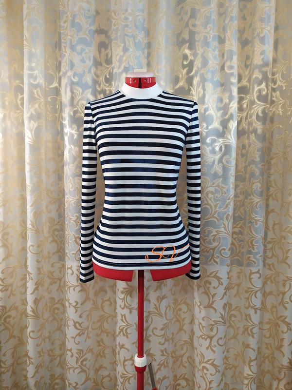 Водолазка, 100% полиэстер, полоска темно-синяя шириной 1 см, водолазка не садится и не растягивается после стирки