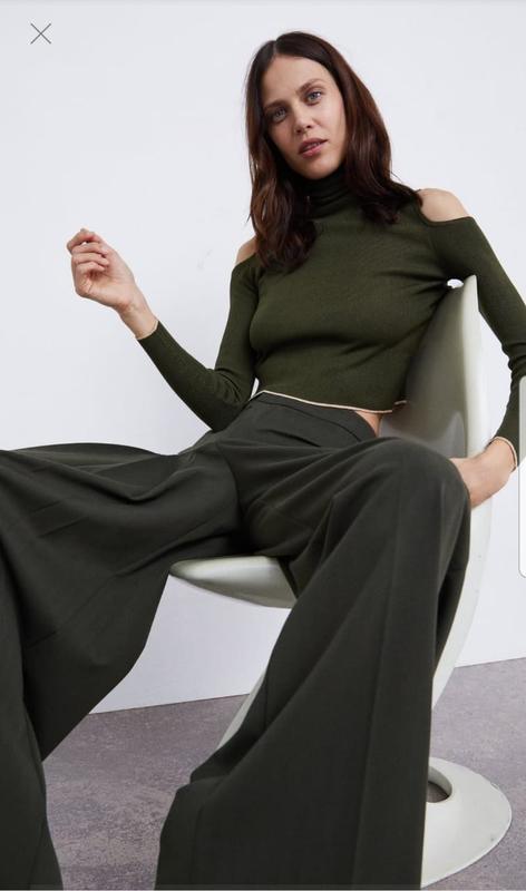 Красивая кофта-топ от ZARA с открытыми плечами. Размер S Состояние новой Цвет хаки