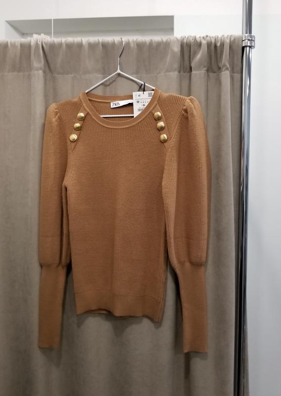 Свитер с золотыми пуговицами Zara Размер S Длина 58 см Плечи 30 см Рукав 65 см Ширина под рукавами 32 см (тянется ) Размер М Длина 58 см Плечи 31,5 см Рукав 65,5 см Ширина под рукавами 32,5 см (тянется )