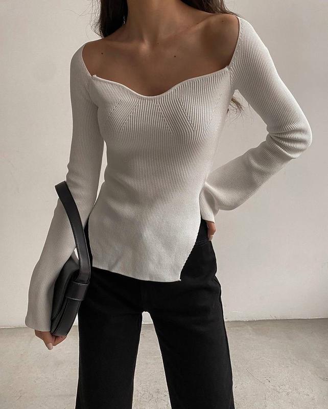 Гольф с топовым вырезом❣️ Мод:790 Цвет: черный, белый, бежевый Размер: универсал 42-44 Ткань: трикотаж рубчик Внизу ровный срез☝🏻