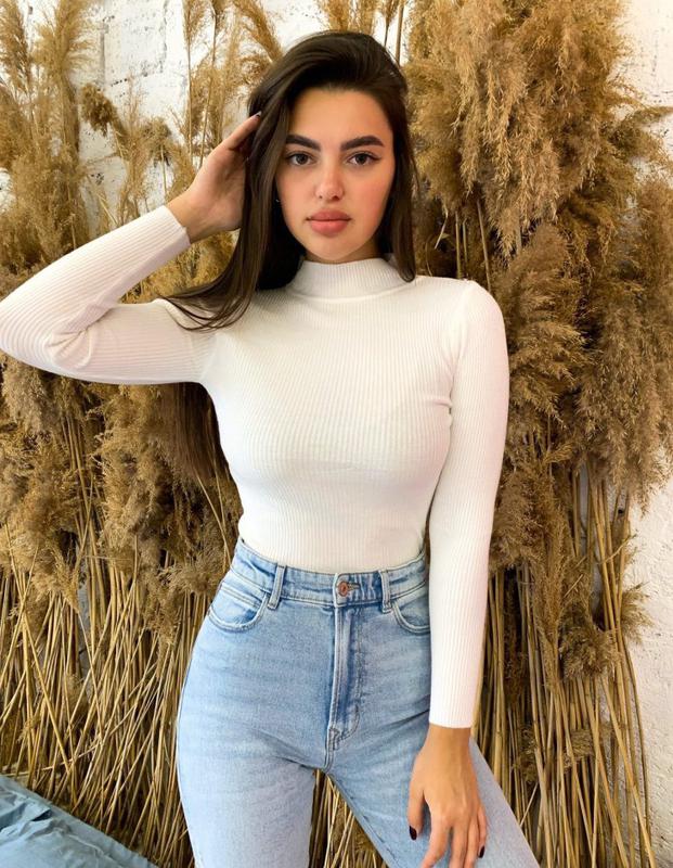 Гольф Размеры: 42-44 Гольфик стойка Материал: рубчик Рост модели: 170см Ог: 92см, от: 66см, об: 93см