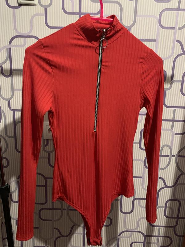 Красный эффектный боди в рубчик на замочке , размер М (10)