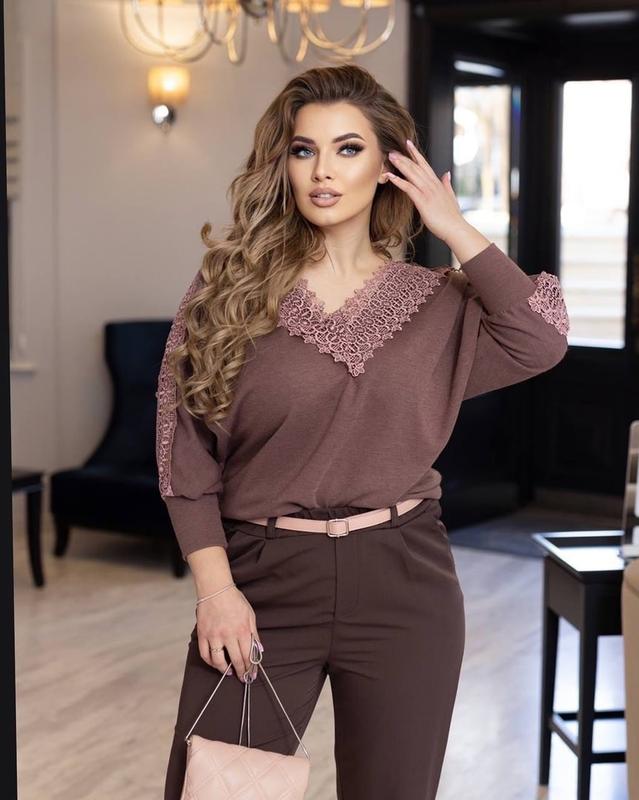 Кофта арт. sev. 746 Ціна: 800 грн Тканина: Ангора в'язка (Корея), дороге мереживо (дизайн може змінюватися) Розміри: 48-52, 54-58, 60-62 Кофточка дуже м'яка і приємна до тіла, від декорована гарним дорогим мереживом по рукавів і горловини. Рукав реглан, широкий манжет.