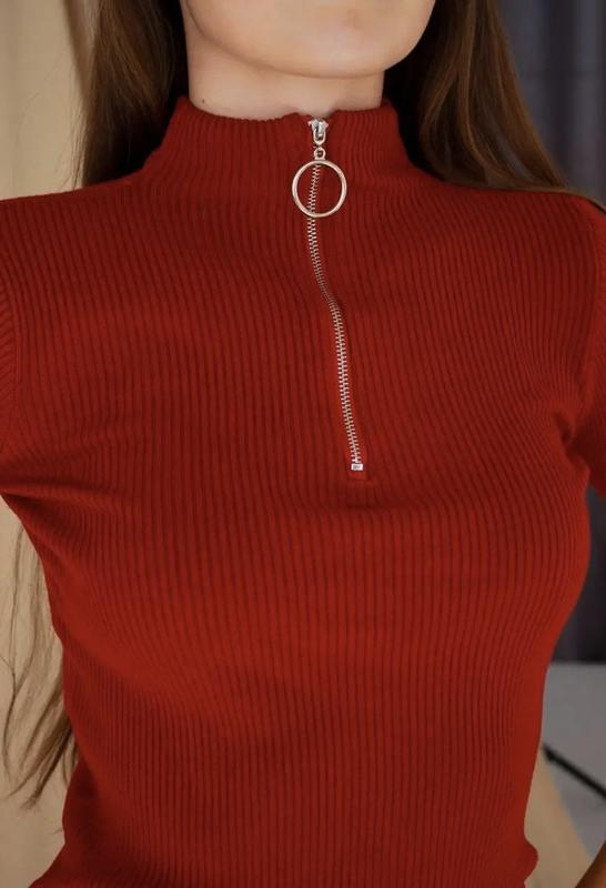 Теплий базовий гольф-стійка в рубчик з блискавкою і замком-кільце. Комфортний, м'який і еластичний гольф, тягнеться до L. При розтягуванні довжина гольфу і рука не підскакують вгору. Склад: 10% бавовна, 20% віскоза, 60% поліестер, 10% еластан. Після прання не деформується. Заміри в нерозтягнутому стані: Довжина светра: 57 см; Довжина рукава: 57 см; Обхват грудей: 70 см; Обхват пояса: 64 см; Ширина плеча: 35 см.