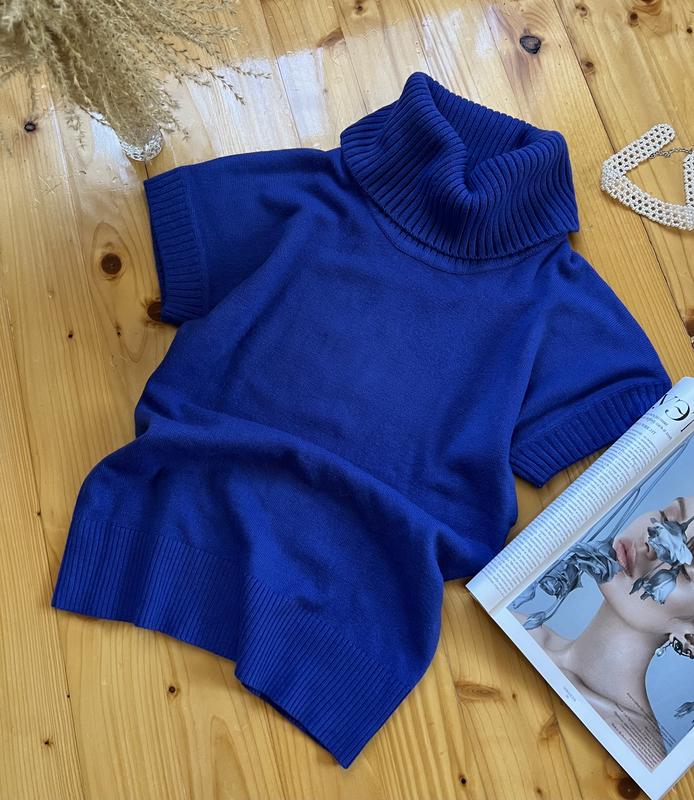 Синяя безрукавка с горловиной Цвет нереален Приятная на ощупь