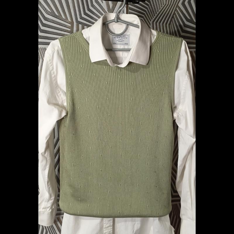 GABRIELLA benelli 🔥🔥🔥жилет красивого оливкового цвета, натуральный состав коттон и вискоза, на вид как трикотажный шелк. замеры плечи 36, грудь 45, длина 60, пройма 24. Размер М,Л, хорошо тянется.