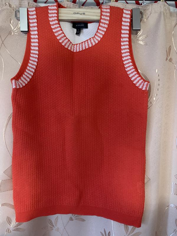 Яркая удлиненная желетка в насыщенно морковном цвете, хорошо тянется