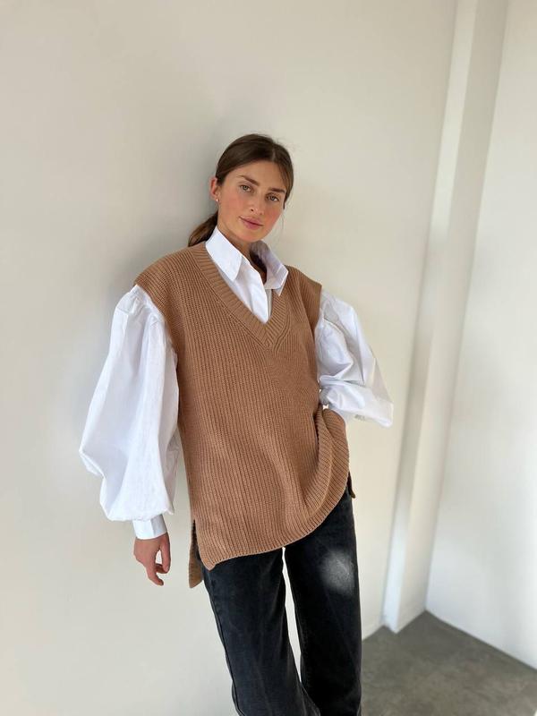 ◾️Жилет ◾️Мод: 4058 ◾️Состав: 30вискоза/70акрил ◾️Цвет: кемел ◾️Размер: эдиный 42-46