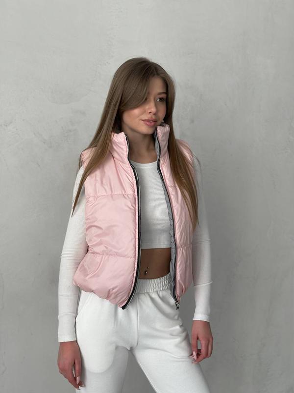 🔺Жилетка двусторонняя 🔺Мод. 078 ☑Цена:650 ☑Размеры:42-44,46-48 ☑Тканина: плащівка лаке силикон 200 ☑Цвета: черный-белый;графит-пудра;мокко-молоко; Жилетка двусторонняя на молнии, снизу регулируется резинка