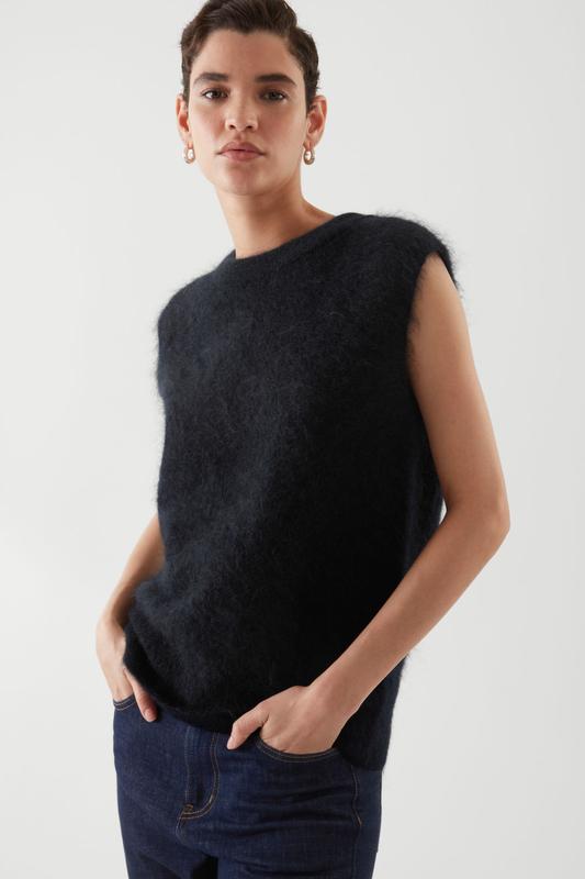 ЖИЛЕТ ИЗ МОХЕРА ОБЛЕГАЮЩЕГО КРОЯ Этот темно-синий вязаный жилет, изготовленный из смеси экологически чистого мохера и переработанной ткани, обеспечивает непринужденную посадку, а пушистая текстурированная пряжа создает эффектный вид. - Ребристая шея, без рукавов. - Ребристый подол - Сертифицирован по стандарту Responsible Mohair Standard для защиты благополучия коз и их окружающей среды. 71 % RMS мохер, 27 % переработанный полиамид, 2 % эластан. Только сухая чистка. Длина спины размера S составляет 25¼ дюймов / рост модели 5 футов 9 дюймов, на ней размер S.