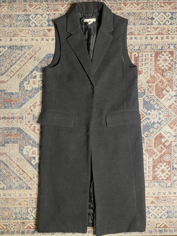 Универсальная базовая жилетка идеально подойдет для дополнения офисного университета. Идеальный серый цвет Длина 105 см Спинка 36 ПОГ 36 ПОБ 48 Размер 32