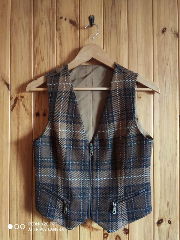 Жилет в клетку ручная работа стильный, возможная как подростковый, шерсть 50 процентов