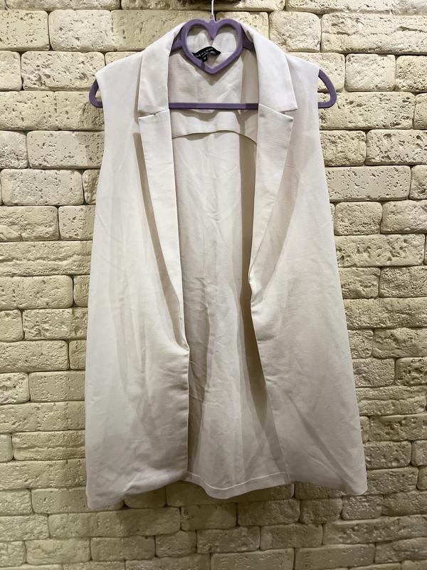 Жилетка брючна кремового кольору, стан 5/5, одягалась декілька разів. На бірці розмір 10, але на 8 також добре сидить Довжина 81 см Плечі 38 см Ширина 49 см, сідає вільно Оплата повністю на карту або накладеним платежем з передоплатою 150 грн