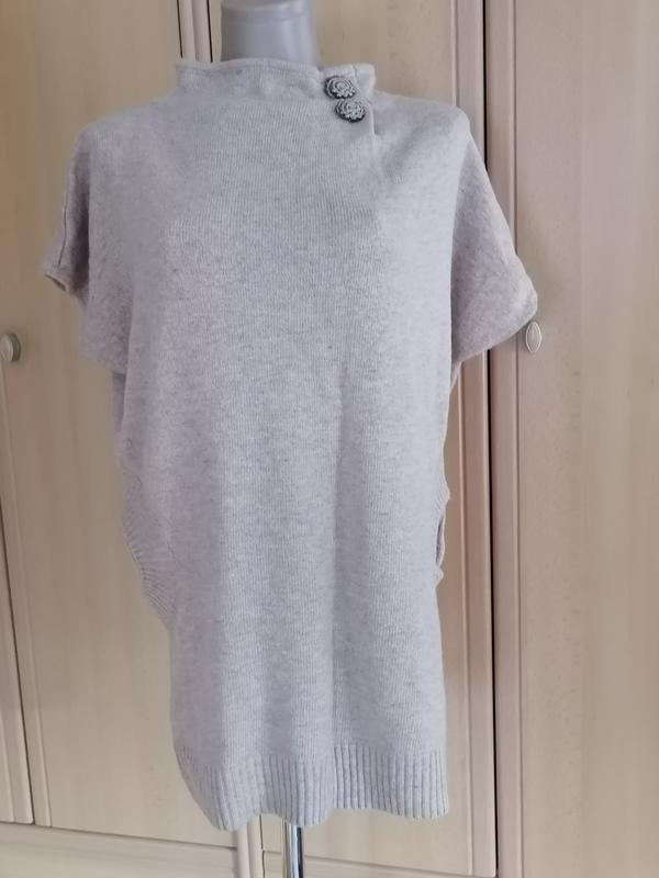 Теплая натуральная безрукавка бежевого цвета от итальянского производителя. Размер 46-48, оверсайз. Вовна 38%, бавовна 52%. По бокам есть кармашки. По груди полу охват 60см. Бедра полуобхват 53см. Низ, резинка полуобхват 51см. Длина 75см.