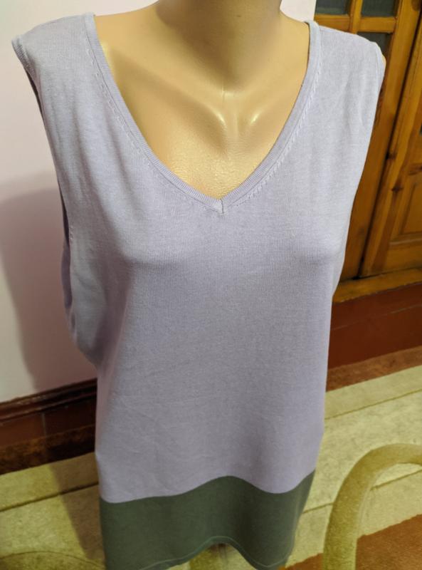 жилет, вискоза, нейлон, сиренево-хаки зеленоватый цвета, удлиненный, по бокам разрезы. длина по спине 74, пог61