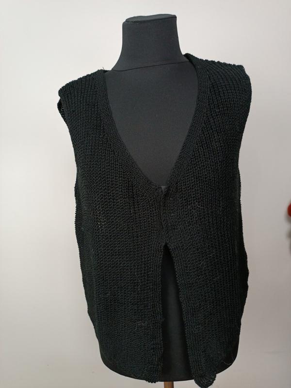 оригинальная вязанная жилетка,застёгивается на крючки пог 52 длина 52