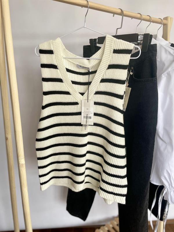 Полосатая стильная безрукавка NA-KD, абсолютно новая) Размер М Замеры: ПОГ - 55 Длина -62 Обмену только при наличии аналогичной вещи другого размера. Возвращение нет!