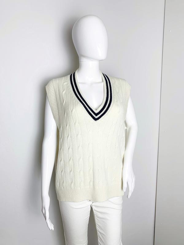 Жилет виповнений на замовлення з люксової італійської пряжі кашемір.V-образний виріз горловини,оздоблений смужками.По спинці та переду візерунок коси.Можливо виконати повтор на ваш розмір в інших кольорах. При індивідуальному замовлені є передоплата 50% від вартості замовлення.