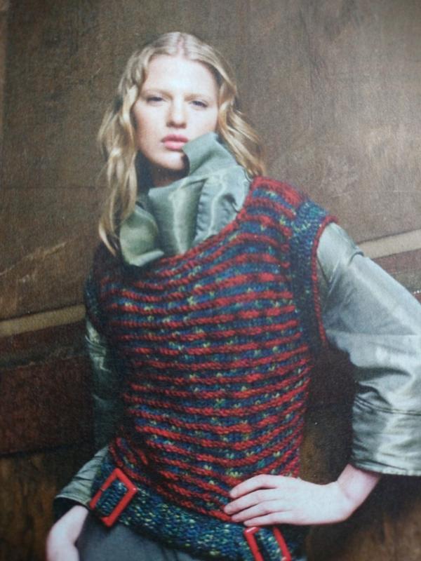 Строгий офисный дресс код порой требует чего-то безумного-тоха, выходящего вне рамки.Красные полосы, чередующиеся с насыщенным зеленым и вы не просто работник, вы -креативный работник.Жилет вязаный спицами добавит вам шарма и согреет в холод.