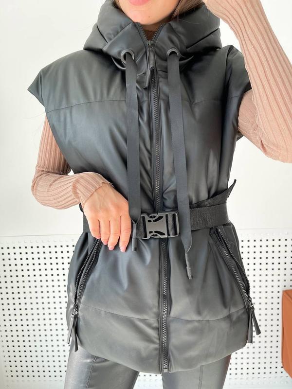 🥥Женский жилет оверсайз ✨ с поясом # 28 ( по низу есть кулиса можно регулировать длину) 🔹Размеры: S-M (42-44), L-XL (46-48), XXL (50-52) 🔹Ткань эко кожа 🔹Утеплитель силикон ( плотность 150) 🔹Цвета: черный, белый 📌Замеры по изделию: 🔹S-M (42-44): довжина жилетки - 67 см, обхват грудей- 116см, обхват стегон - 108 🔹L-XL ( 46-48): довжина жилетки - 68 см, обхват грудей - 122 см, обхват стегон - 112 см 🔹XXL (50-52): длина жилетки - 69 см, объем груди - 128 см, обхват бедер - 118) #жилет #пояс #белый #черный #кожа #oversize #одеса #brand_378