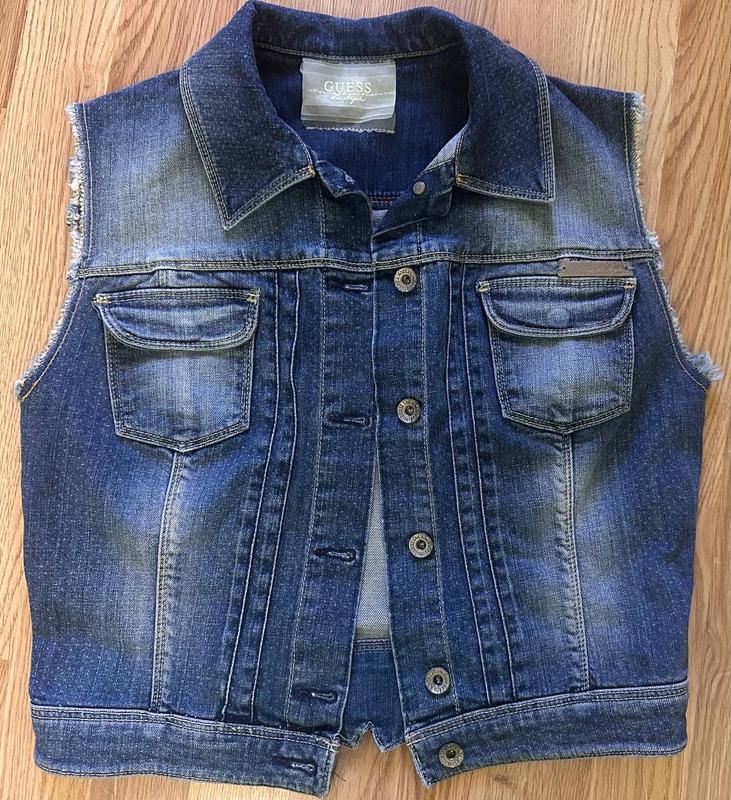 Джинсовый жилет Guess почти не одевался, в идеальном состоянии, размер 34. замеры на фото