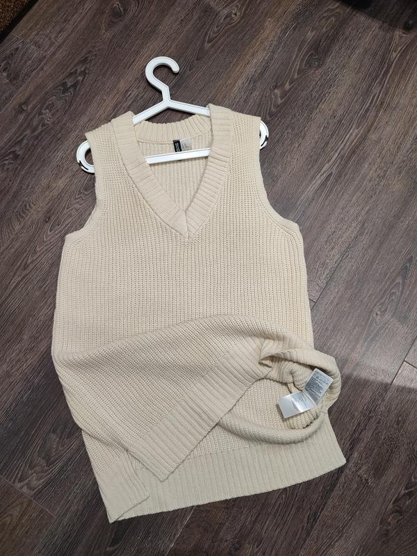 Жилет H&M, в благородном цвете, реальный цвет ближе к фото с бирками, фактурная, крупная вязка, приятное на ощупь трикотажное полотно, качество исполнения отменная, размер и состав ткани указан на бирке, состояние отличное, сток видно по биркам. Замеры: по чым 36 см, расстояние от подмышки до подмышки 47 см, пройма 26 см, длина по спине 74 см, длина от плеча до низа 82 см. Фото на теле не имеет. Делайте выбор сознательно, возврат не имеет.