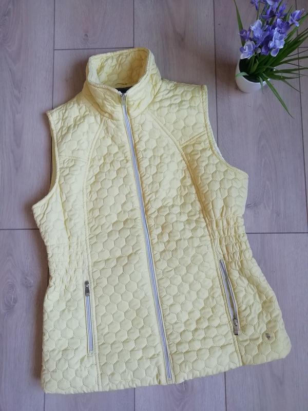 Жилет. Размер указан М. Ориентируйтесь на замеры. Длина жилета 65 см. Полуобхват груди 50 см. Полуобхват талии от 44 см до 46 см. Полуобхват бёдер 52 см. Состав 100 %полиэстер. Состояние идеальное. Следов носки нет. Фото на теле нет.