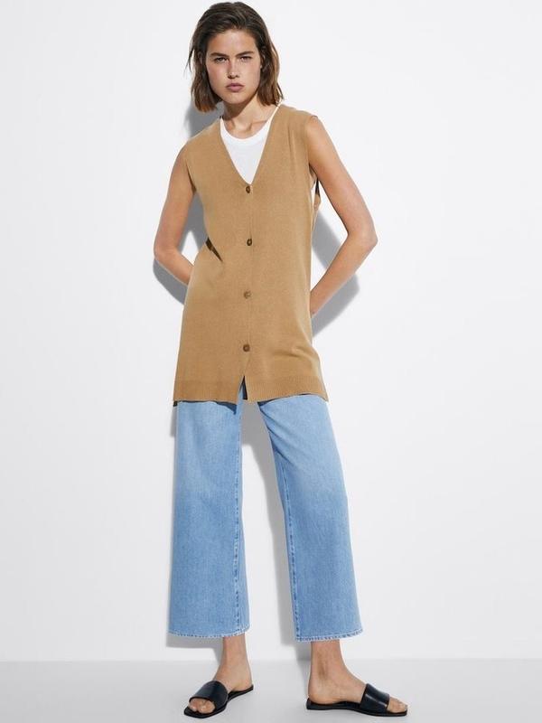 Удлиненная жилетка песочного цвета Massimo Dutti Замеры: На полхват под подмышками 46, полу обхват бедра 52, Длина 80