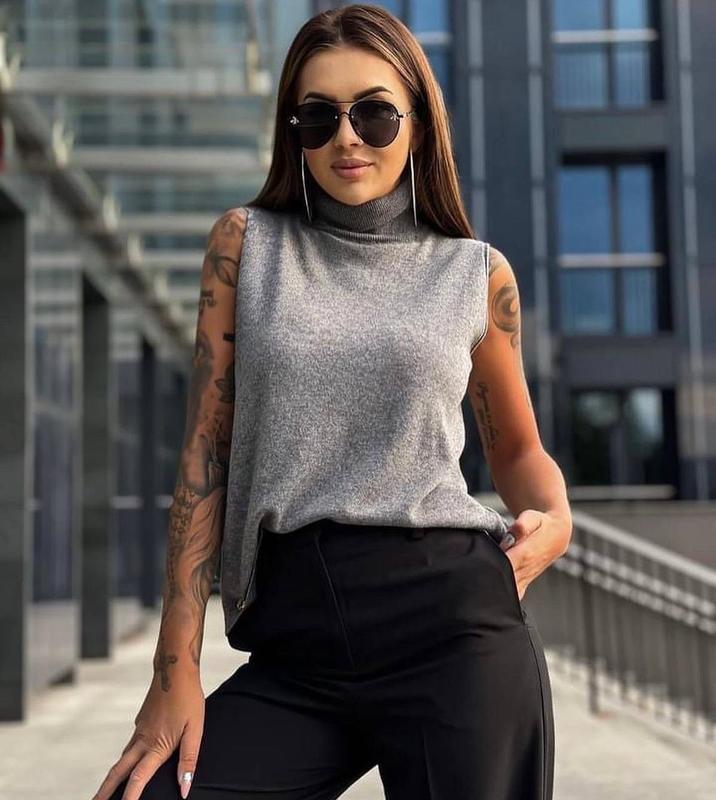 Жилетка №741 Цена - 410грн тканина ангора Цвета серый,беж,белый Размеры - 42-44, 46-48, 50-52 Кофточка «американка» без рукавов с высоким горлом. Выполнена из качественной ангоры с добавлением хлопка, отлично тянется и устойчива к износу. Имеет комфортную длину, что позволяет заправить ее или носить навыпуск. Отлично подходит для сочетаний с жакетами, кардиганами и плотными рубашками. Особенно эффектно будет смотреться в образе с джинсами flare с высокой посадкой
