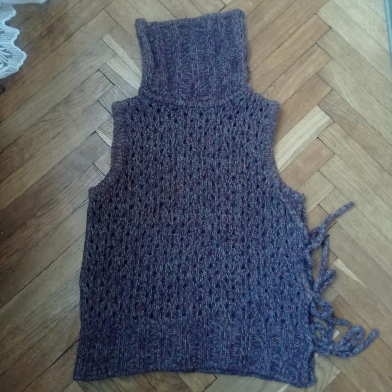 Красивая и очень теплая безрукавочка, сбоку завязки, в составе есть шерсть.