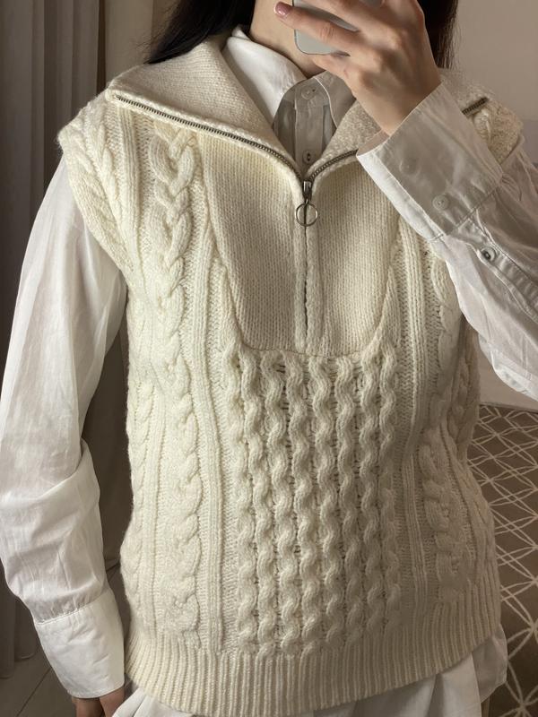 Розмір S Жилетка молочна, грубої вязки. Фасон вільний. Без дефектів. Стан ідеальний