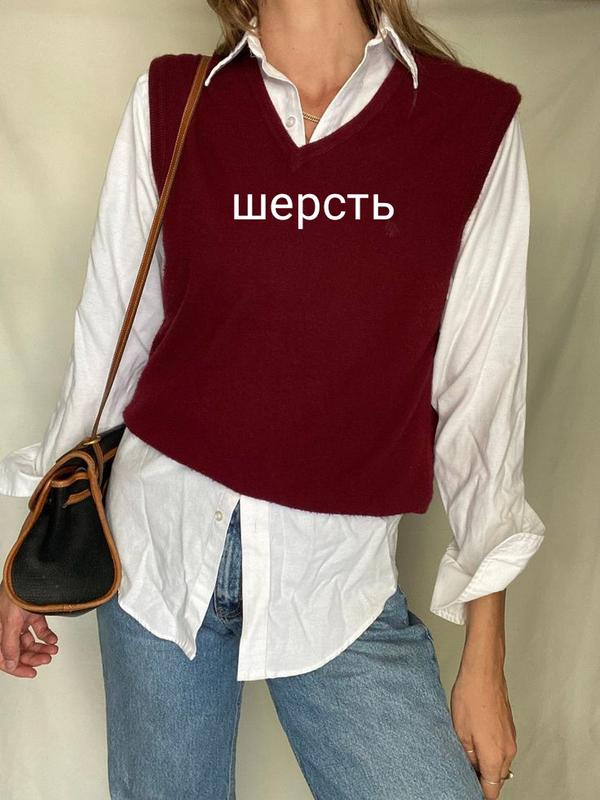 Бордовый жилет из 100% мериносовой шерсти. Шерсть меринос – это высококачественная, мягкая и тонкая шерсть, полученная из овец мериносов, известная своими теплоизоляционными и влагоотводящими свойствами. Размер указан XXL (56). Состояние идеальное. Замеры: ПОГ 56 Длина 69 Плечо 17