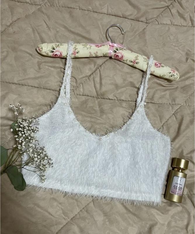 Отправка после 100% оплаты на карту💳 Белый мягкий топ травка с бусинами
